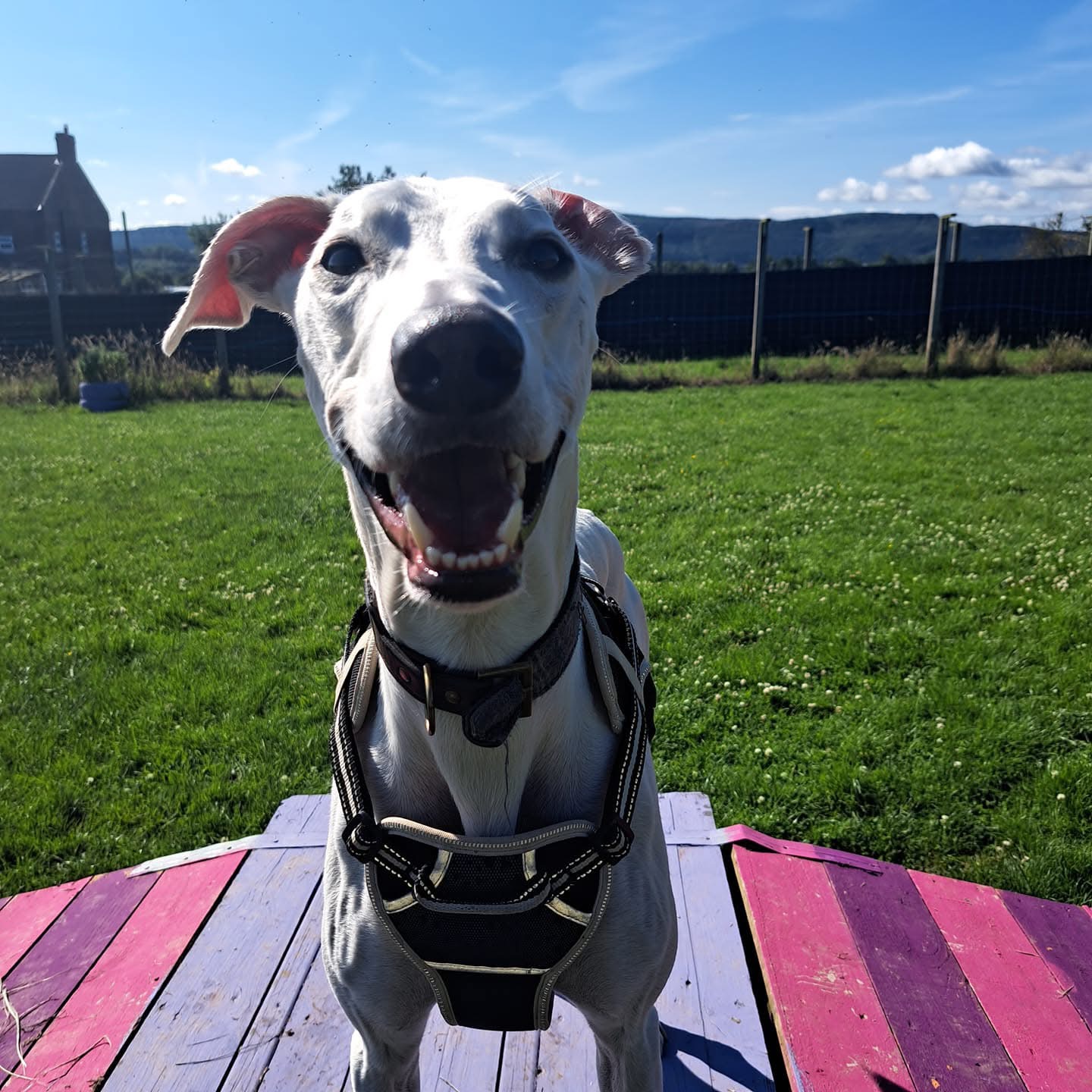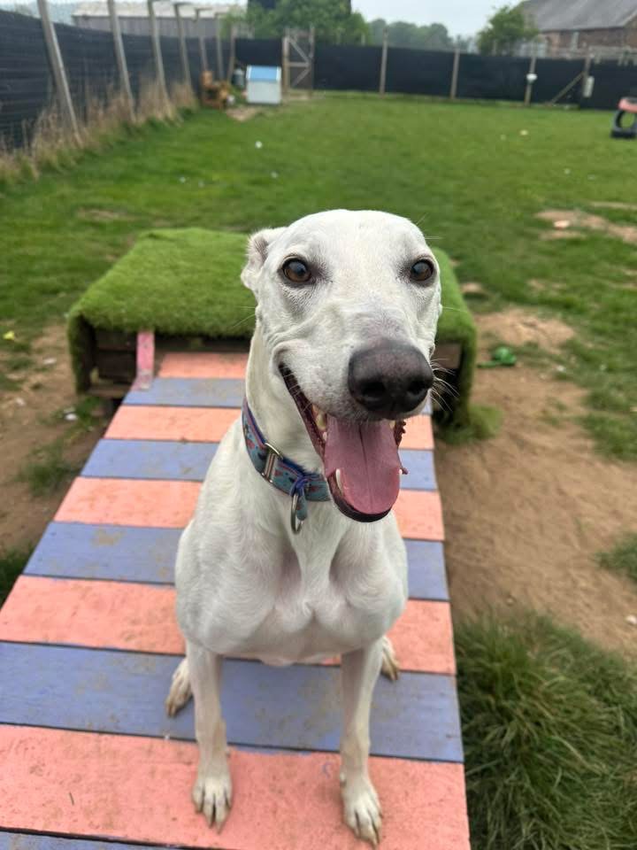 "Benji is a handsome and energetic boy who is always ready for fun! Whether he’s dashing around the paddock, spinning in excitement, or zooming in joyful sprints, his playful spirit is truly contagious. He absolutely adores cuddles and will happily lean in for a good back scratch. Benji is an affectionate dog who will brighten your days with his playful antics and warm snuggles."