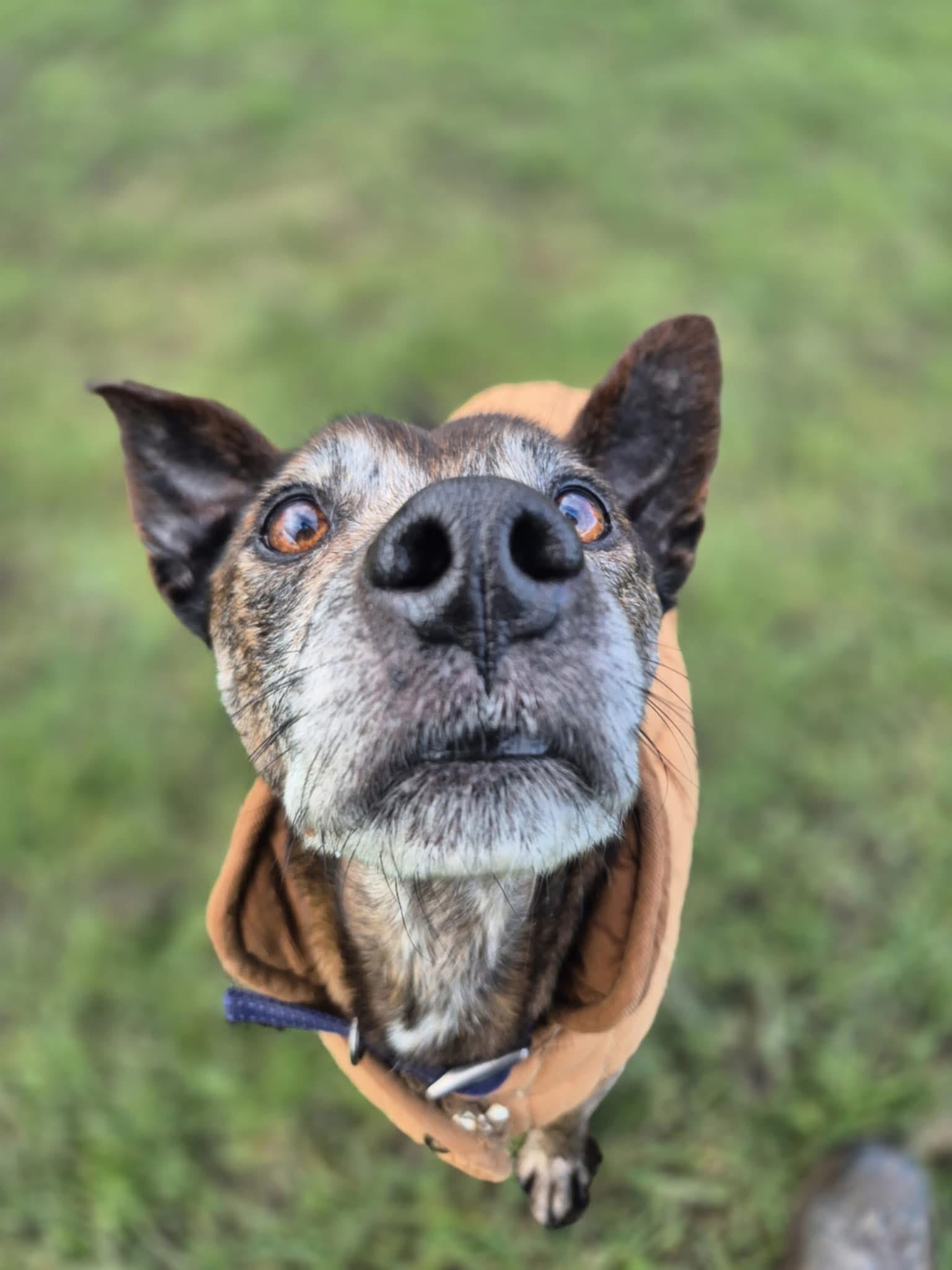 Clive came into kennels quite unwell and so very thin. He’s gaining weight now and enjoying his little self, little walks and snoozes in his cozy kennel. He’s an amazing dog and we hope someone out there will give him the retirement home he needs very soon. He deserves the very best