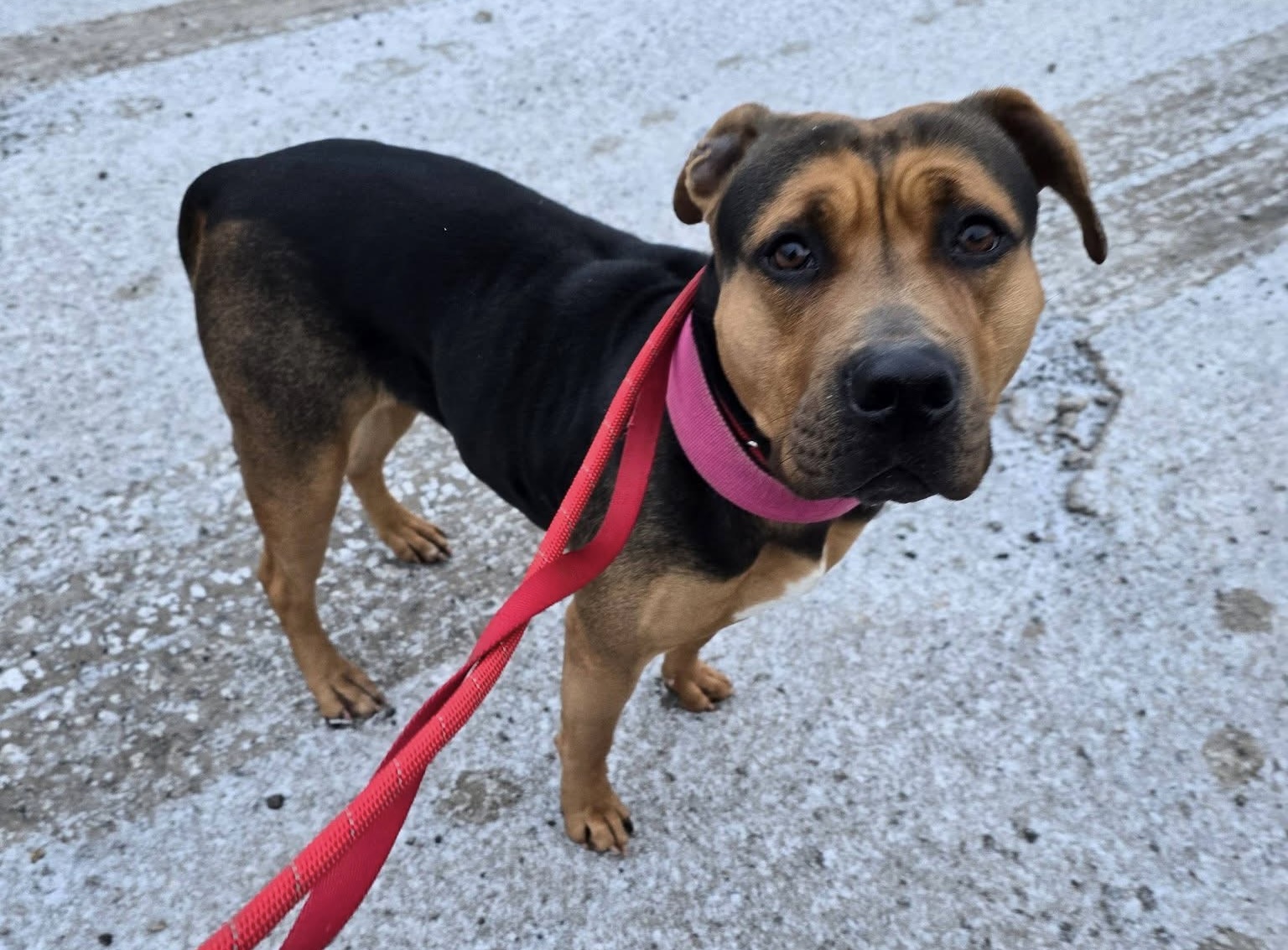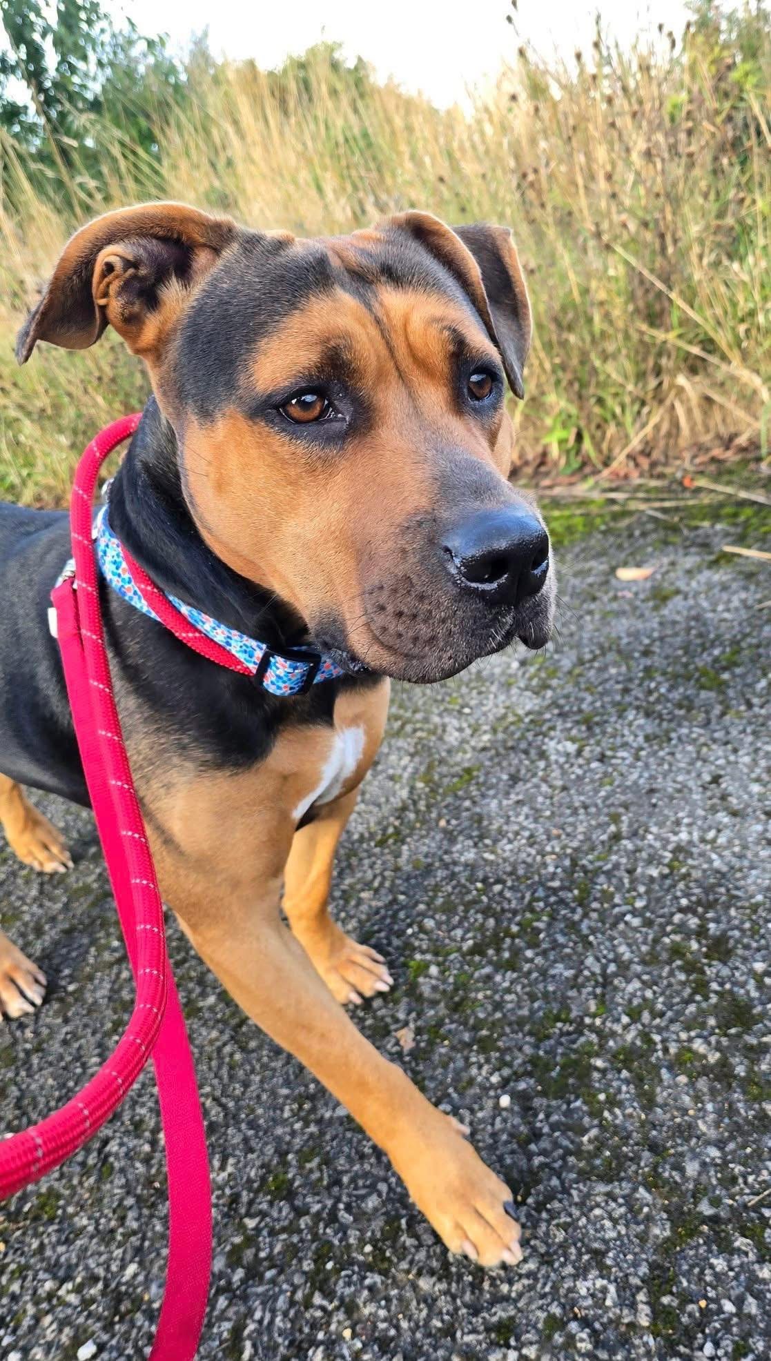 Wilma was very unsure at first in kennels but she is such a nice girl underneath. She is making progress with enjoying walks but she would blossom much quicker in a home with a very kind owner